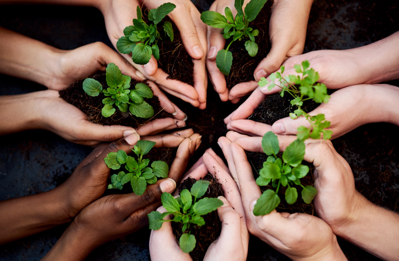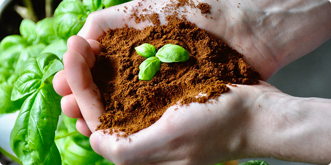 Coffee & tea grounds are collected and repurposed for plant nourishment.